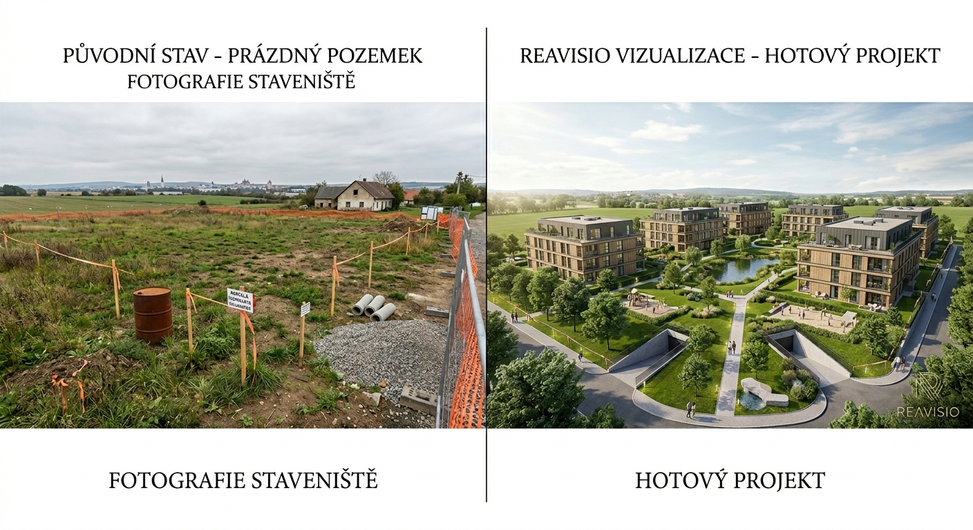 Stavíte vlastní dům nebo připravujete developerský projekt? Nejtěžší je prodat něco, co fyzicky ještě neexistuje. V ReaVisio pomáháme developerům a budoucím stavebníkům překonat tuto bariéru. Vytváříme vizuální podklady, které promění prázdný pozemek nebo architektonický plán v hmatatelnou realitu, která nadchne budoucí kupce i investory.